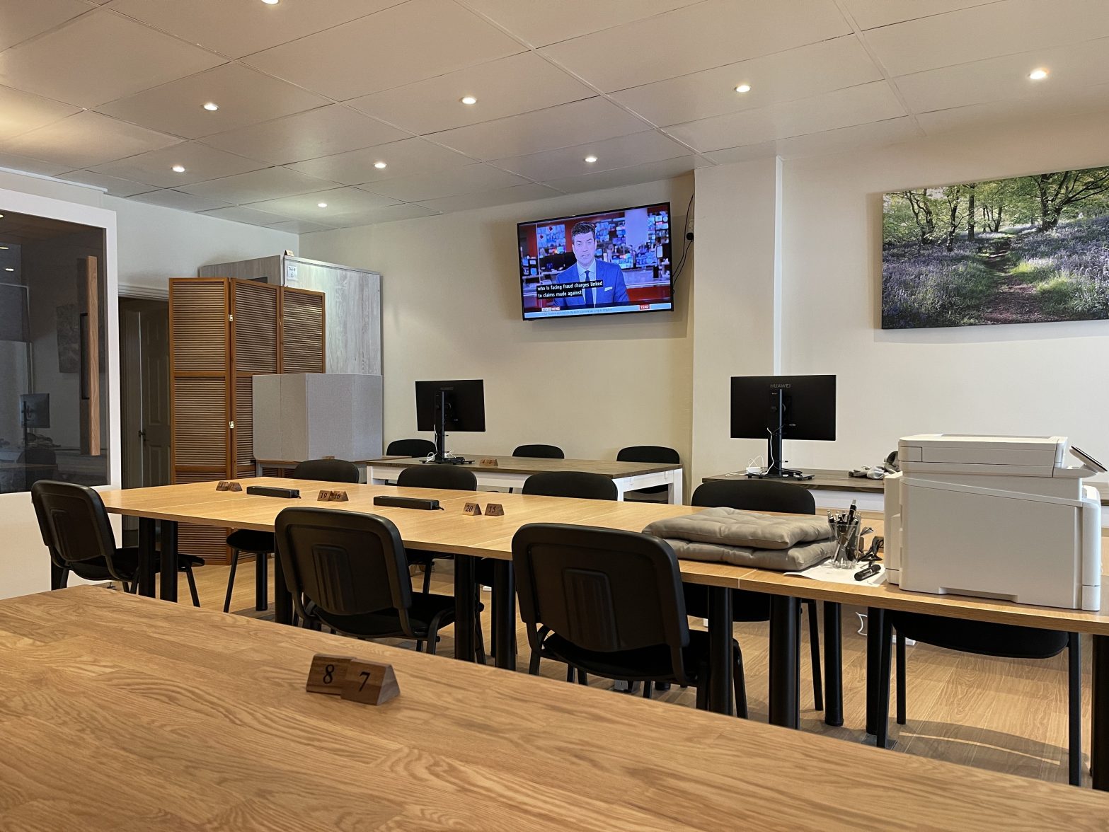 Our spacious desks have plenty of room for your laptop, mouse and documents. They are available on a pay-as-you-go basis and can be booked and paid for using the button above. We also have soundproof booths – ideal for making phone and video calls – and privacy screens if your work is confidential. The whole room can also be booked as a meeting venue.